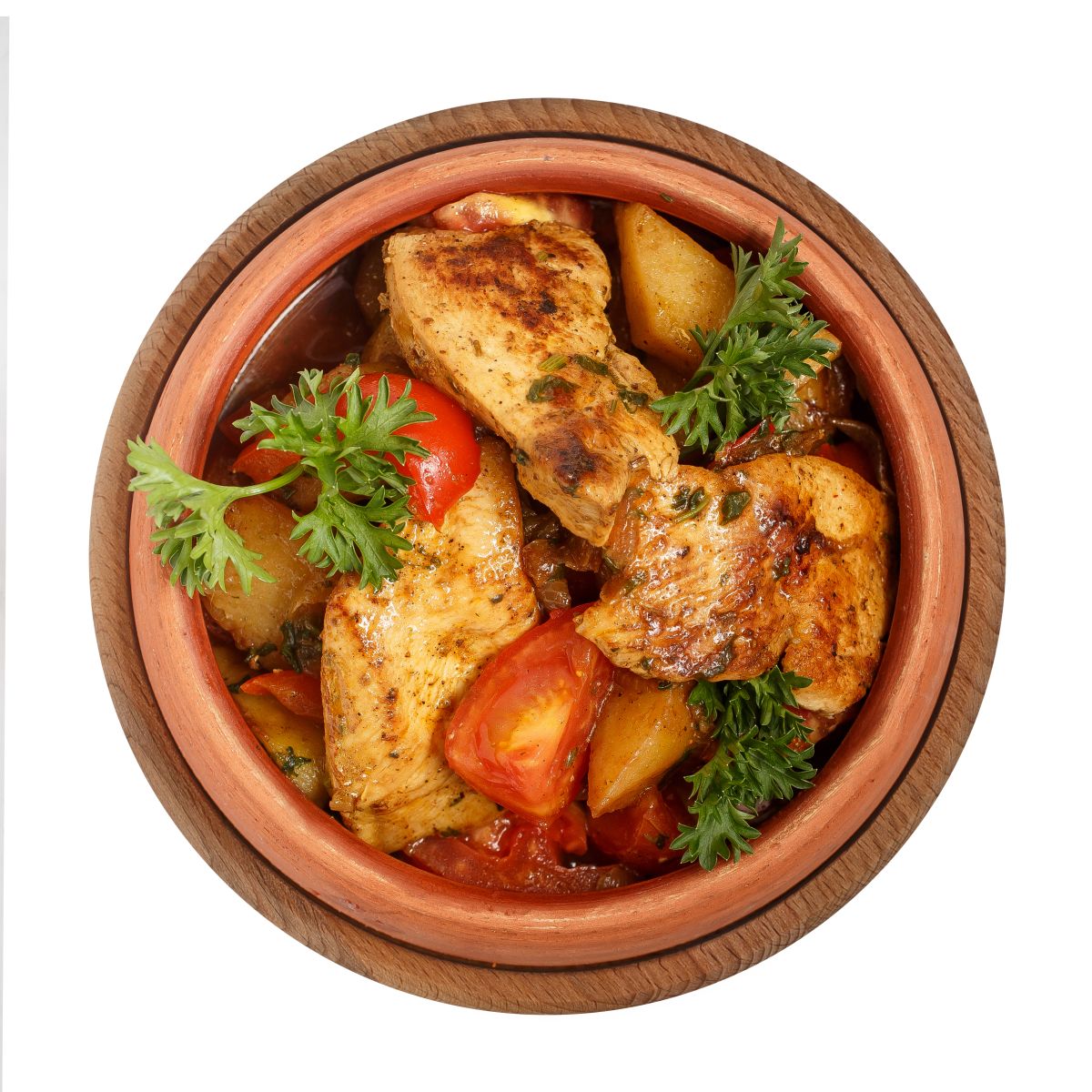 Оджахири из цыпленка (Филе цыпленка обжаренное с томатами, картофелем, болгарским перцем, луком и ароматными специями)